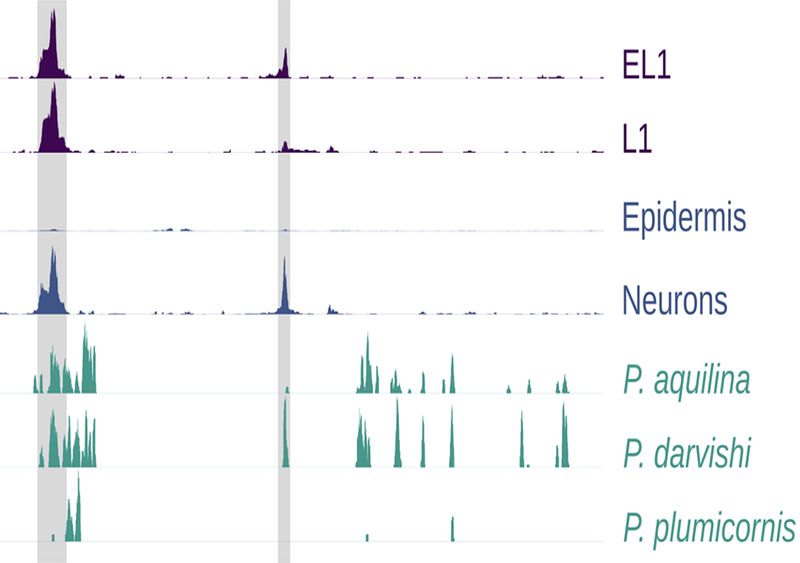 Genome-wide ATACseq and sequence conservation profiles, from Forbes et al. 2025; see Suppl. data 1 and 2 (bulk and single-nuclei ATACseq) and Suppl. data 3 (sequence conservation).